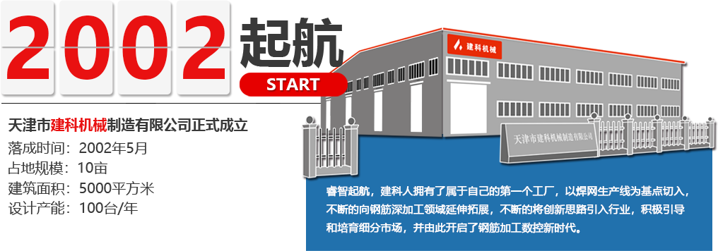 建科智能裝備制造(天津)股份有限公司成立于2002年5月,注冊(cè)資金:人民幣130,982,727元,主生產(chǎn)基地占地面積340畝。是中國(guó)智能化鋼筋加工裝備行業(yè)首家上市公司和行業(yè)領(lǐng)軍的國(guó)家級(jí)專精特新“小巨人”、高新技術(shù)企業(yè)、國(guó)家知識(shí)產(chǎn)權(quán)示范企業(yè)。